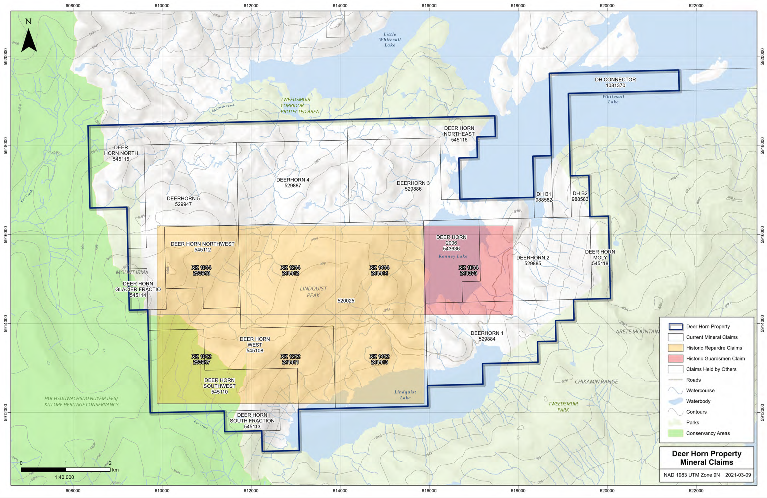 Deer Horn Metals Corp. (now called First Tellurium.) commissioned an exploration program in late summer 2012 to assess the claims for extensions to the various mineralized zones (Au, Ag, Te, Tungsten, Cu). The program was reported a success as provided for in DHM's news release of early 2013. The Deer Horn claims, due in part to the experience of management of MEMI in returning from the exploration program of 2012 with DH core, are positioned for evaluation and potential exploitation pursuant to Deer Horn Metals Corp.’s efforts (details of which are available on the FTEL web site and corporate disclosure documents). FTEL has fully earned 50% of the Deer Horn mineral claims with the remainder owned by Guardsmen Resources Inc. The original option agreement did provide for DHM to increase its ownership of the Deer Horn claims to 75% on the condition that the subject claims were placed into commercial production at Deer Horn’s expense. As mineral exploration/exploitation markets improve, DHC has undertaken geophysics and a modest drill program in 2023. The have indicated that 2024 will see results released as well as an expanded exploration program. FTEL has indicated it intends to explore the Deer Horn claims in summer 2026. In the meantime, our company is exploring any possible opportunities to monetize its 50% interest in the Deer Horn property. If commercial production were to be achieved then Guardsmen would own a 25% carried interest in the property. You are directed to the Deer Horn claims operators website, First Tellurium Resources FTEL (renamed from DHC) for information on the news surrounding exploration and development of the Deer Horn claims. Guardsmen’s Antler claims are adjacent to the north of the Deer Horn claims.
